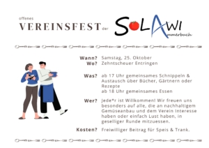 Am 25. Oktober findet unser Vereinsfest für Alle in der Zehntscheuer in Entringen statt.